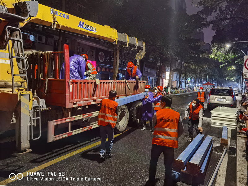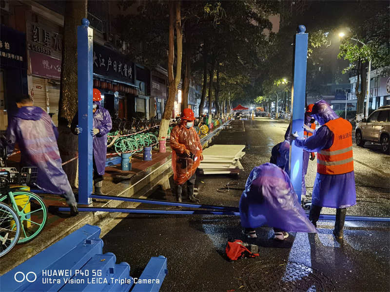 公司成立多支防疫突击队,深入动员全体员工积极参与抗疫志愿活动,贡献绵薄之力,共克时艰。20日23点,公司接到湖里区建设局紧急支援抗疫的指令——“快、严、细”完成吕厝路西端、江头西路、冠宏花园、新景园等多处围挡封闭施工任务。公司迅速响应集结,从五缘映月、南山学校等项目调配抗疫物资,突击队员们雨夜出征鏖战。